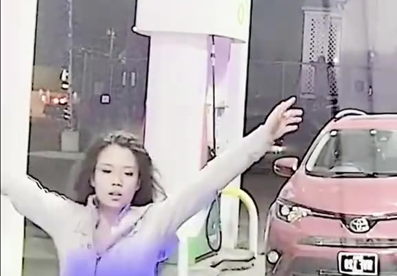 The footage shows a tense scene as the suspect, reportedly attempting to rob or steal at the gas station, is suddenly tackled to the ground. The father can be seen pinning the thief down with firm control, while his daughter stands close by, helping to ensure he cannot escape. The suspect struggles briefly but is no match for the determined duo.