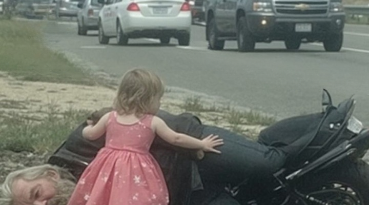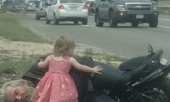“Mommy! Stop! The motorcycle man is dying!” Sophie cried, her small hands pounding against her seatbelt.