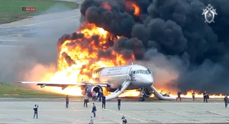 Aeroflot confirmed on Twitter that flight 1492 was en route from Moscow to Murmansk in northwestern Russia when it was forced to turn back because of technical problems. The airline said in a brief statement Sunday the engines of the Sukhoi SSJ100 were burning after the aircraft landed, but the sequence of events before and after the fire started was not clear.