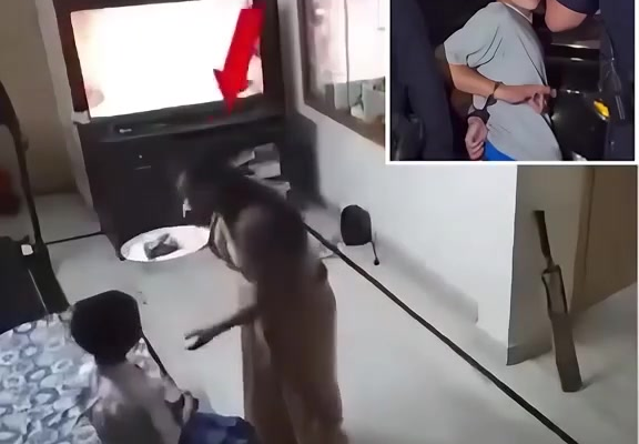The disturbing footage, believed to be from India, shows the mother calmly sitting in the living room while speaking on the phone. Moments later, the boy storms into the room, holding a bat, and begins swinging it in anger. His mother appears completely unaware of what’s about to happen until the shocking moment unfolds.