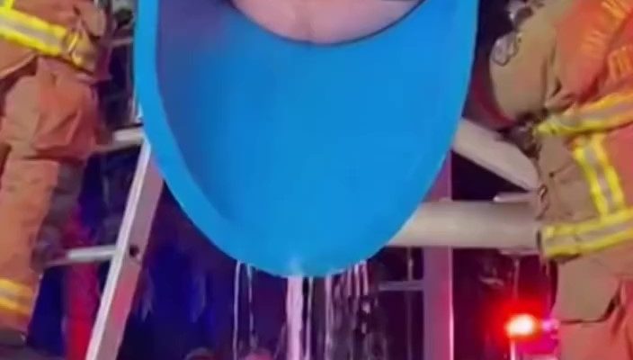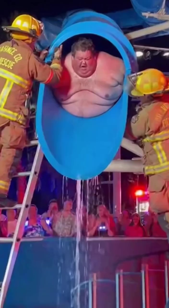 Firefighters in the state of Florida were called to an unusual emergency at a local water park after a man became completely stuck inside a vertical blue waterslide. According to initial reports, the man’s body was wedged tightly inside the narrow tube, leaving him with no space to move or free himself.