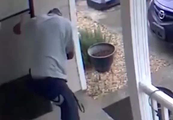 The footage, captured by a doorbell camera, begins with a man forcefully entering a quiet suburban home in broad daylight. Moments later, the mother, who had been inside with her 6-year-old, can be seen rushing toward the front door, visibly panicked. According to police reports, the intruder was attempting to break in after an earlier argument with a neighbor, and the woman had no connection to him whatsoever.