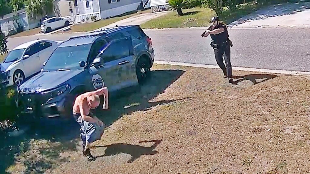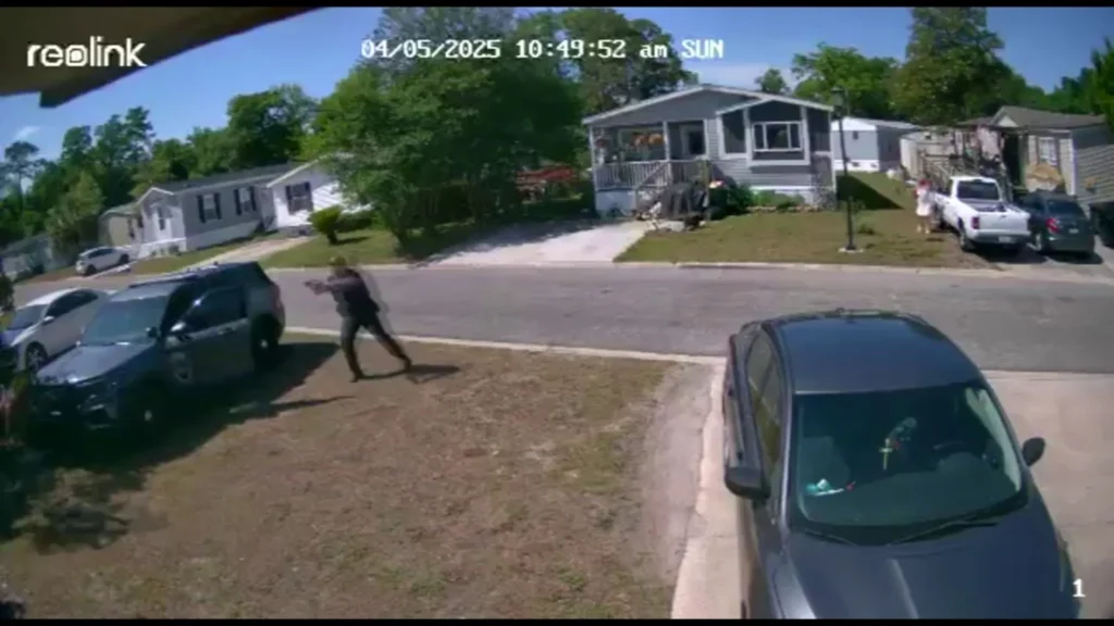 JACKSONVILLE, Fla. – The intense moments leading up to a deadly officer-involved shooting on Jacksonville’s Westside on Sunday were captured on a neighbor’s surveillance camera.