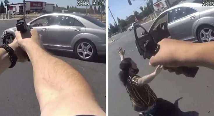 The woman reacted to the gunfire by putting the car into reverse, but collided with the sergeant’s patrol car, police said.