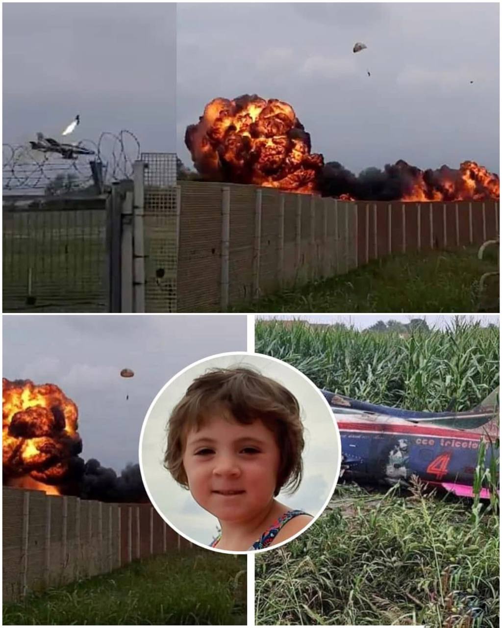 An Aermacchi MB-339 jet from the renowned Italian Air Force acrobatic display team, Frecce Tricolori Aermacch, crashed and killed a 5-year-old girl.