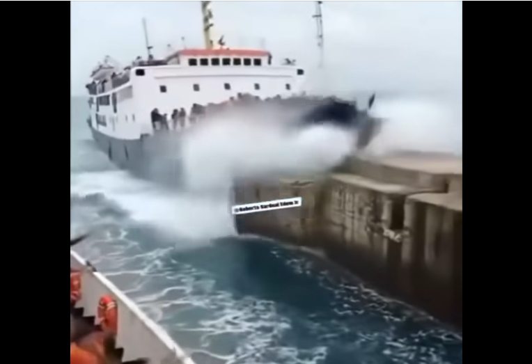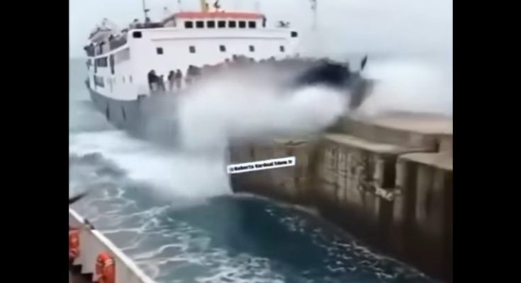 The violent impact destroyed a large section of the dock and sent passengers and bystanders into chaos.
