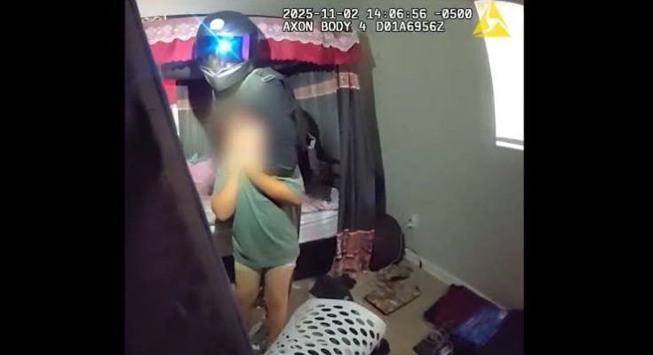 “The suspect barricaded himself with his brother in a back bedroom. Deputies heard the child screaming for help and kicked down the door. Deputies encountered the suspect, who was holding a knife and refusing to let go of the child. The suspect was wearing a motorcycle helmet and two tactical vests with ballistic plates.”