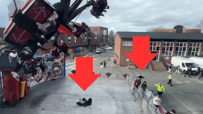 đŸššđŸ˜±Terrifying moment fairground ‘Superstar’ ride breaks apart injuring woman, 19, as revellers run from falling debris